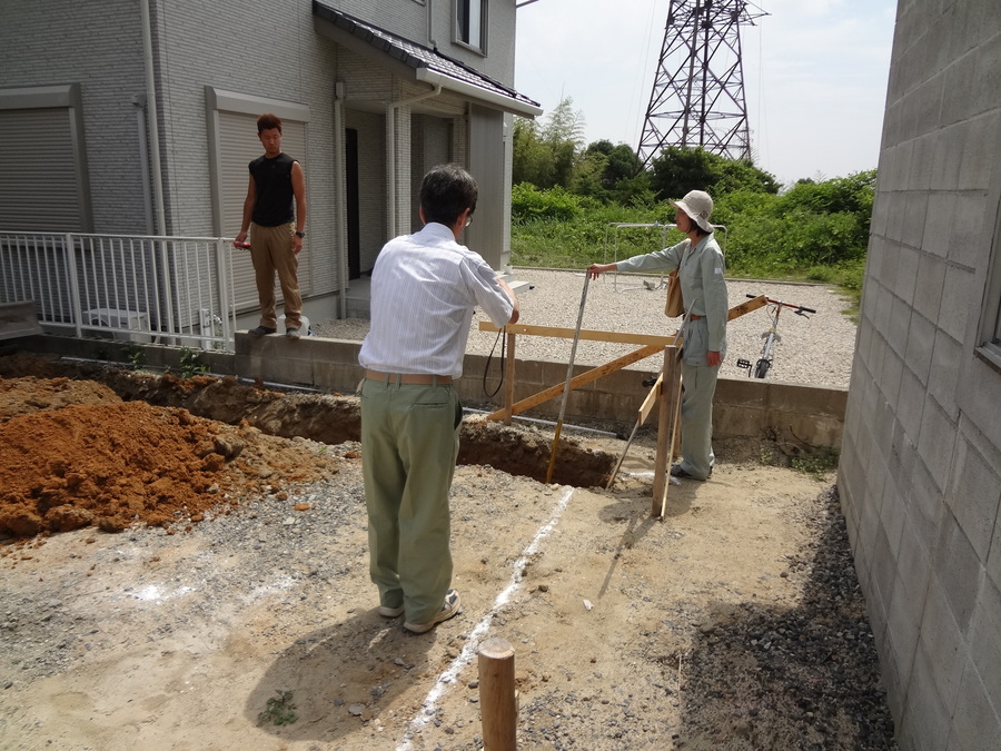 前回のブログの最後では、<地鎮祭>とあわせて、建物の位置確認を行いました。