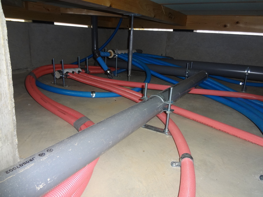今回の配管形式は、さや管ヘッダー工法を採用しているので、