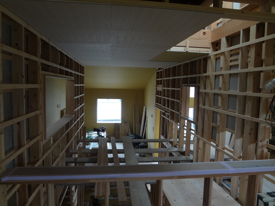 これで、天井や壁の下地が完成しました。大工さんの主な仕事はここまでになります。