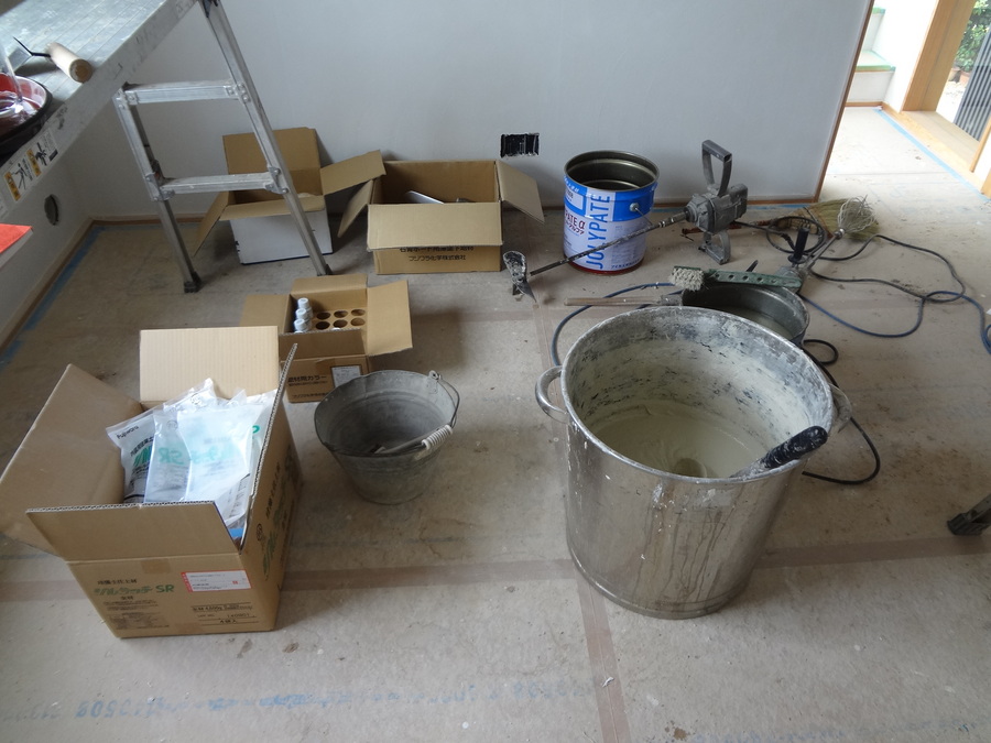 左官仕事は現場で調合を行いながら作業をしていくので、時間との勝負です。