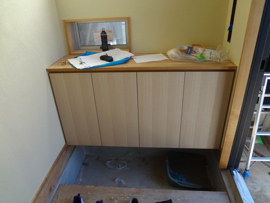 建具と同時に家具の扉なども施工され、手の触れる場所には保護塗料が塗布されています。
