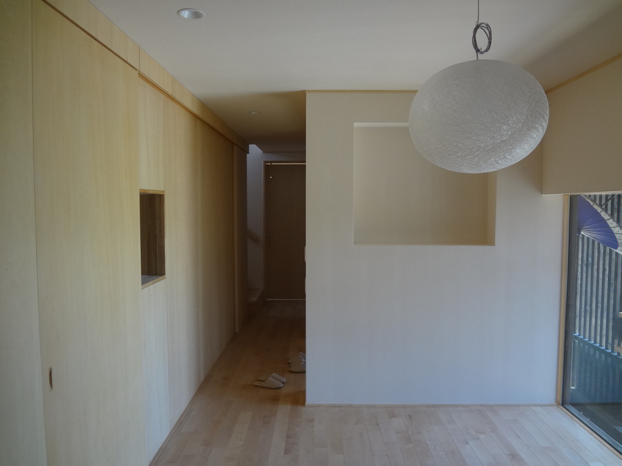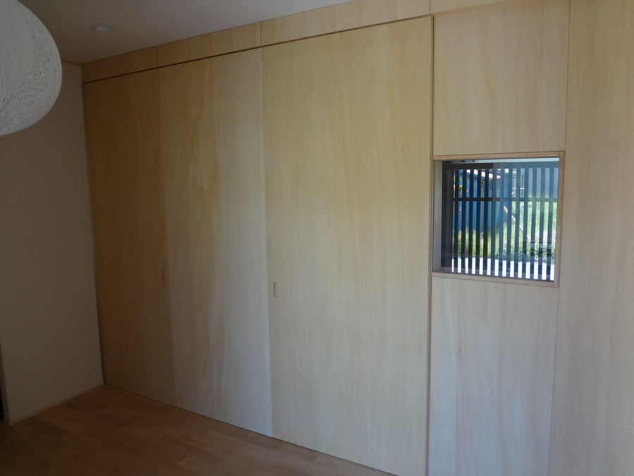 建具も少し工夫をして、戸を閉めている時は壁と一体に見えるようにしています。